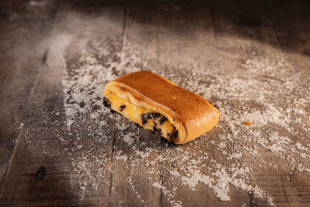 Pâte à brioche, crème pâtissière, pépites de chocolat.